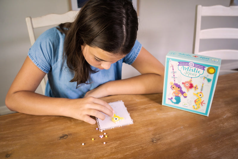 Bead under the sea themed characters, spray with water and like magic you have pretty bookmarks or bag flair. There are 3 different designs to make.