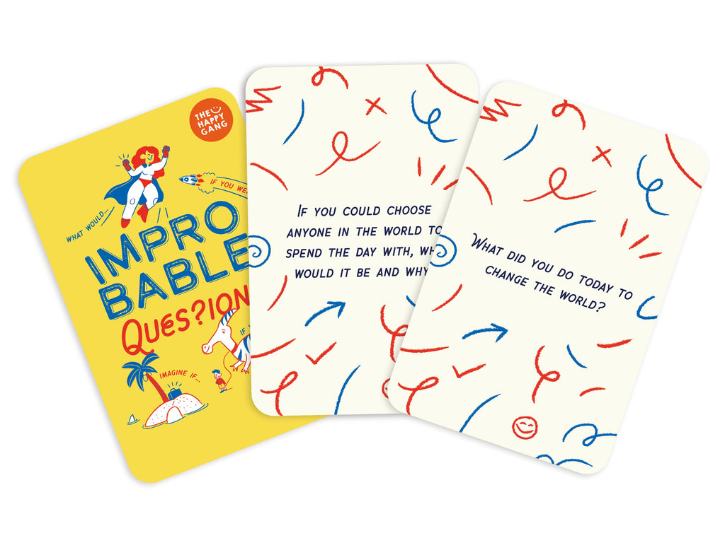 "Improbable Questions" by The Happy Gang is a card game with 50 questions that stimulate imagination and creativity.