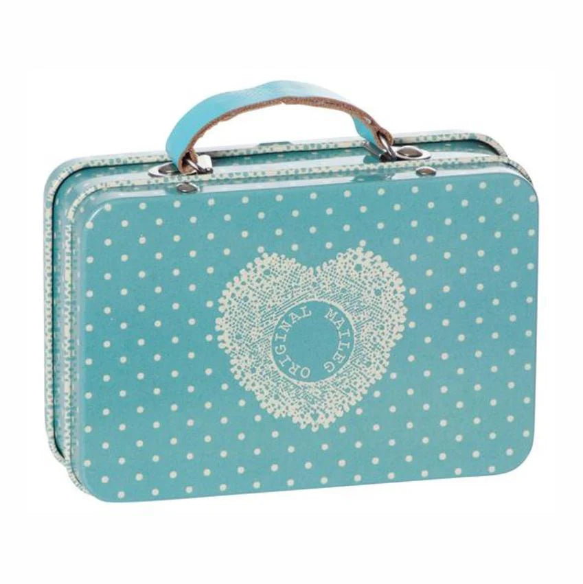 Sweet little metal suitcase tins to store your Maileg treasures in. Available in either blue or pink. Please select from the drop-down box